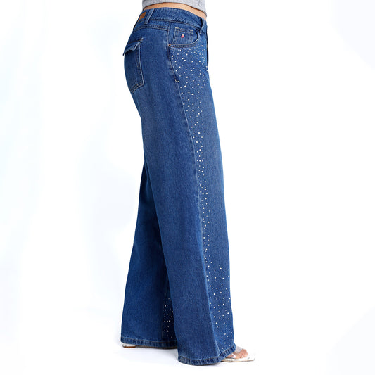Jean Flare Cintura Cristal Focalizado